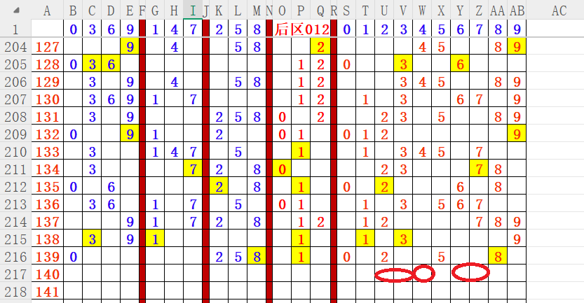 如上图4,012路分析012路,本期重点12路。重点  03 05 06 08 10
