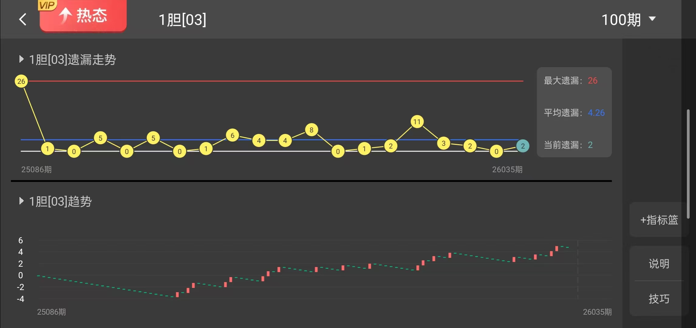 前区 26:近 30 期内该号码出号频次处于全号码段高位,在 25-35 大数区间的前置段,前期出号密度远超同区间其他号码,已严重透支自身出号势能,后续进入长期休整周期的概率极高,可作为杀号。