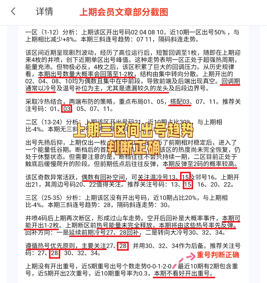 会员文章每个区间给出更详细的分析,说明整体走势的最新趋势,重号和连号均有推荐。