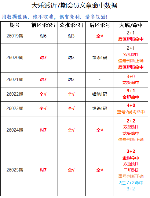 茯苓子大乐透26026期:区间分析+杀号推荐!上期大底命中3+2,会员金胆命中