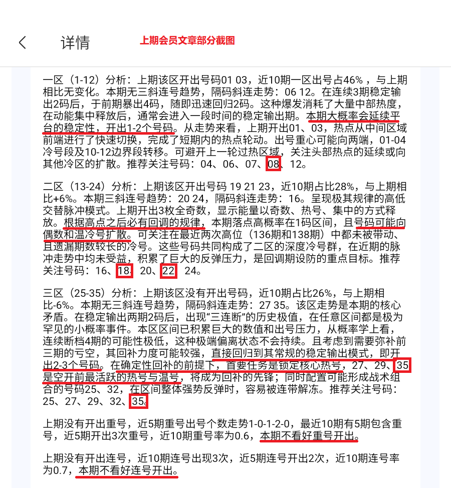 会员文章每个区间给出更详细的分析,说明整体走势的最新趋势,重号和连号均有推荐。