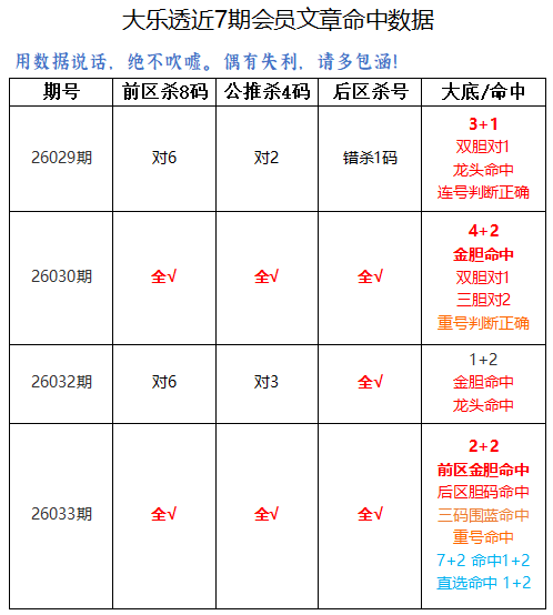会员文章中金胆命中,后区独胆命中,三码围蓝命中,重号命中。