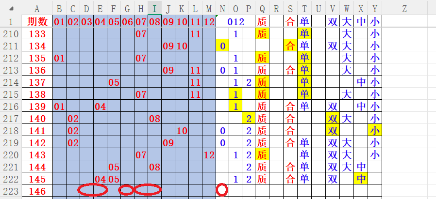 如上图4,012路分析012路,本期重点12路。重点 03 04 06 07 08