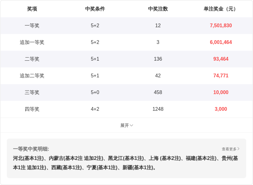 超级大乐透25106期开奖结果05 06 11 26 29 + 05 10,五区比2:1:0:1:1,和值77,质合比3:2,蓝球号码大小为小、大。