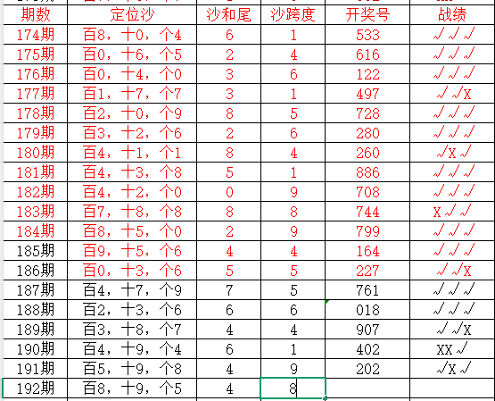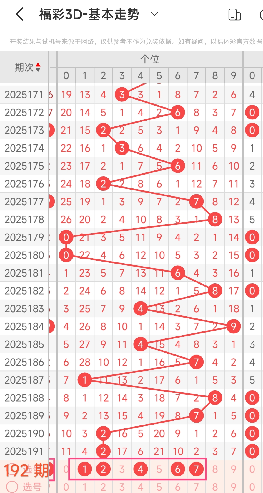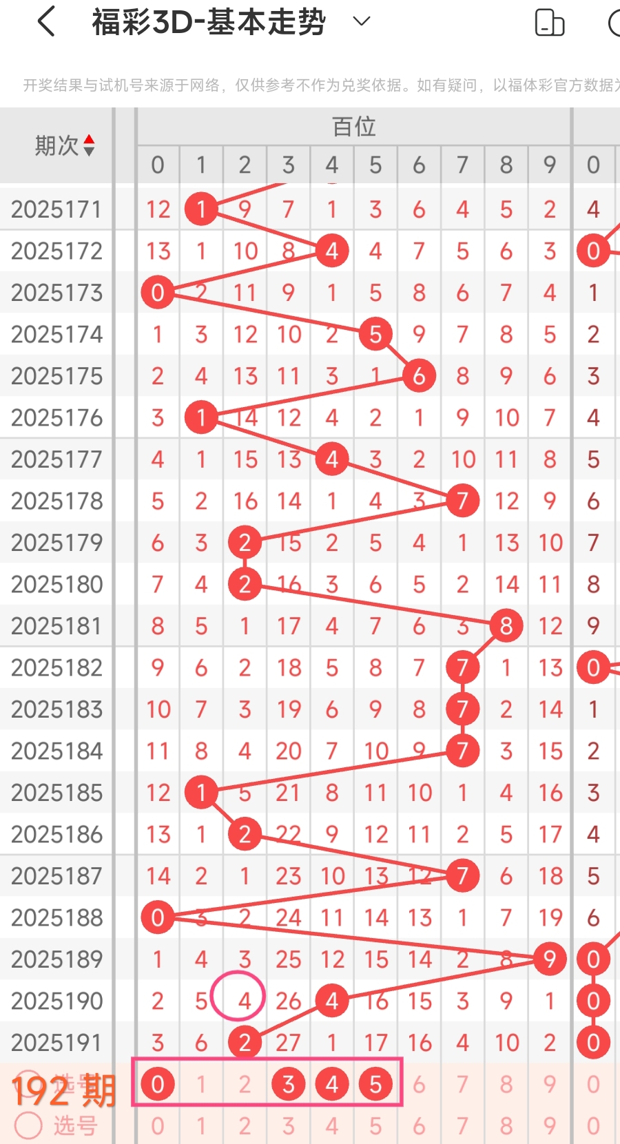 我们选取上期开奖号码202、在一起彩APP上截取前100期的数据,分别记录当开出百2、十0、个2、后下期开出什么号记录下来,然后一一分析。