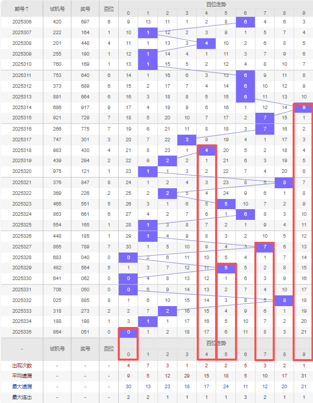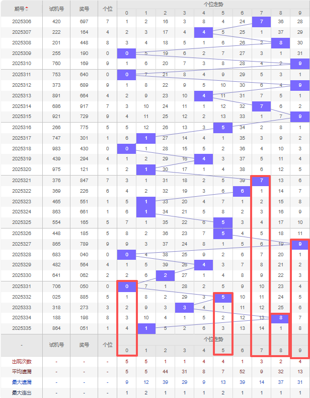 上期个位:1,近10期个位出号:5 9 0 4 2 0 5 3 8 1。最近10期大小变化分别:大大小小小小大小大小,奇偶变化分别:奇奇偶偶偶偶奇奇偶奇,质合变化分别:质合合合质合质质合质,根据近10期规律本期综上所述个位出号推荐5个号码:0 5 7 8 9。