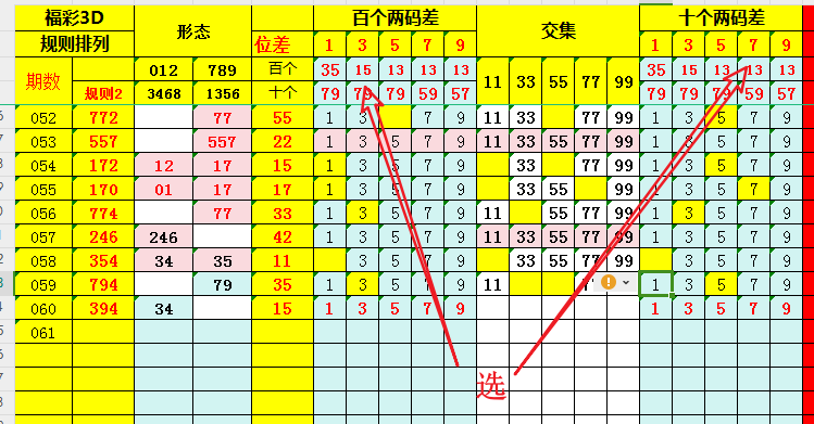 思路与技巧1:在规则排列中,“百位与个位”数字相减的差、“十位与个位”数字相减的差(均取绝对值),其中两码差为奇数的各有150注,两码差为偶数的各有70注。利用这一特点筛选号码,具有较高参考价值。具体运用中,侧重奇差13579进行分析,近期开奖数据复盘如下: