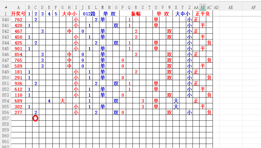 如上图56,大中小分析,中号3456出胆码,最低1个胆码,重点34