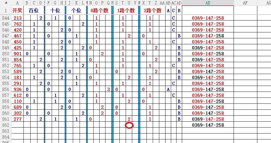 如上图2,012路分析01路尾走比较好,关注0369147尾;