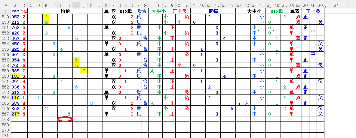 均值:就是开奖号每各数的总和除3,然后得到的余数,如果不够整除可以+1,-1,直到被整除得的数就是均值