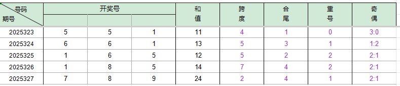 2025324期开奖号码661,我们可以看出近30期百位6出现5次,十位6出现5次,个位1出现5次(较327期减1)。