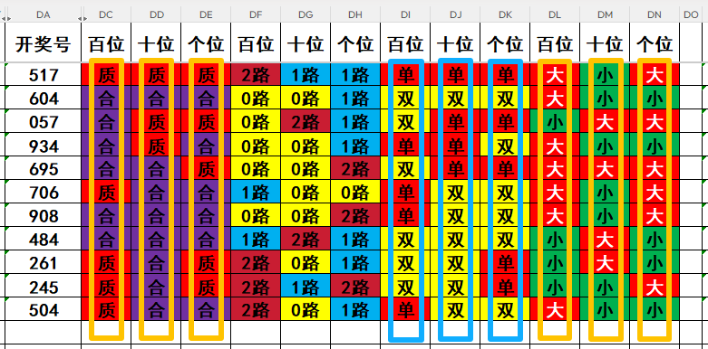 3,目前开奖号个位号码球11天当中,质数(12357)开出了5次,合数(04689)开出了6次,本期重点关注开奖号个位号码球质数的回补!