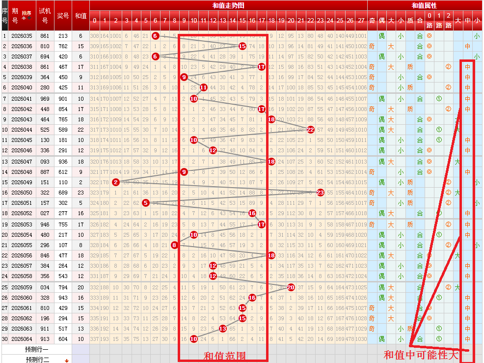 综上所述,本期和值区间9-17间,最佳和值区间14-17。