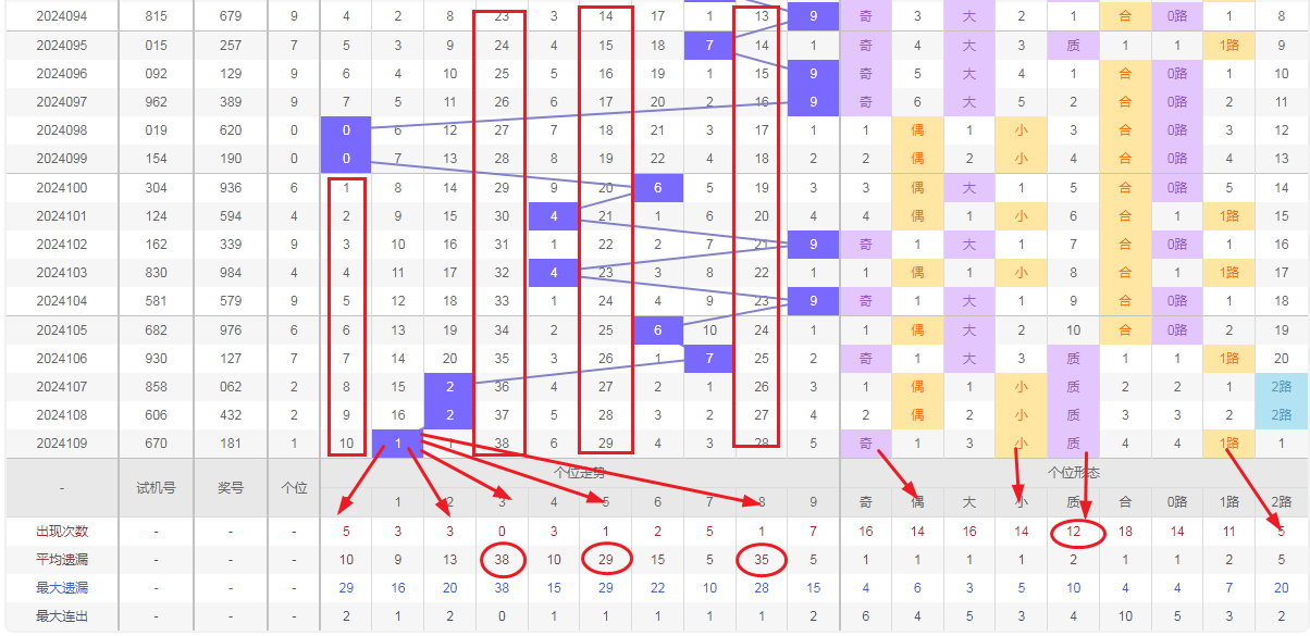 福彩3D个位分析:第109期个位开出号码1属于小奇数,从以上个位走势图中可以看出近100期的大小比为54:46奇比为57:43大小奇偶数据上有点差异有需求但不是太明显,不太好看这时就要借助连线走势和遗漏数据来帮助我们缩水号码。上期个位落号“1”大偶数1路号码球,号码开出了1个振幅,连续多期的小振必被大振幅取代幅符合我们的预期,那么本期我们在个位考虑振幅走势继续走中依然要转变思路考虑大振幅,具体考虑(1-5)个振幅是我们主要的方向,那么在对个位落号情况进行系统的分析时我们可以明显的看到个位号码走势呈现大范围震荡,尤其是在号码的落位特点上表现的尤为突出,那么本期我们在个位研判时就要注意号码的风险,避免出现踏空。因此福彩3D第110期个位看好02368.本文由一起彩钱是生命动力所著,请勿转载