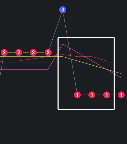 可以看到一些规律,在粉框中,如果一致,那么接下来这些跨度也会出。