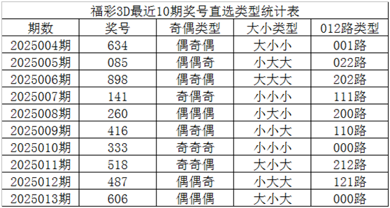 龙哥3D014期解析:0路号继续走热,参考两小一大回补
