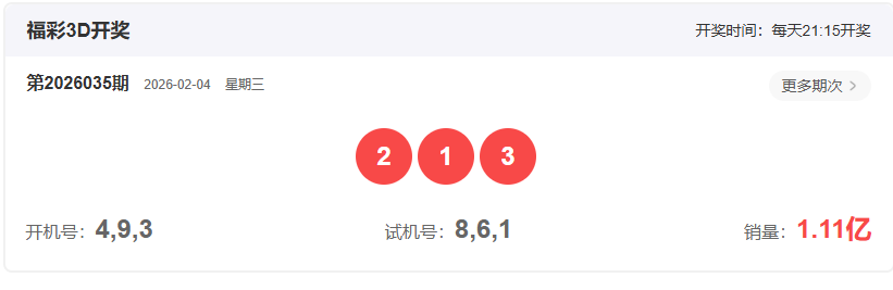 昨晚奖号 213(组六、123全顺、和值6)。