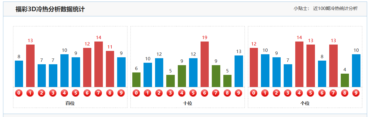 2. 十位分析:上期福彩3D的十位开出了号码8,这是一个大的偶数。从近期的开奖数据来看,十位号码在多个位置上频繁出现,表现出较强的活跃性。然而,值得注意的是,上期的十位号码振幅变化较小且呈上升趋势。本期在十位的分析中,我们预期该位会回补下降,即关注那些与上期相比数值有所减小的号码。因此,本期重点关注号码01234679