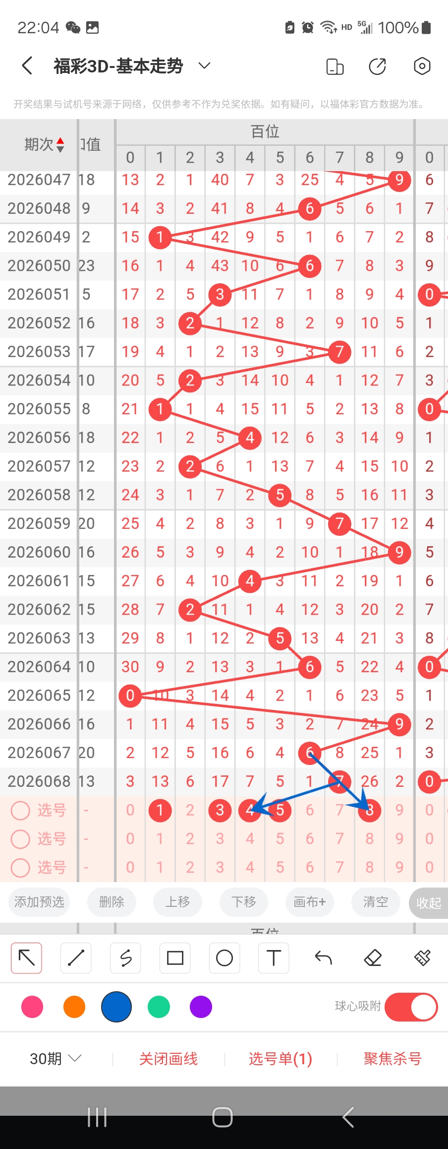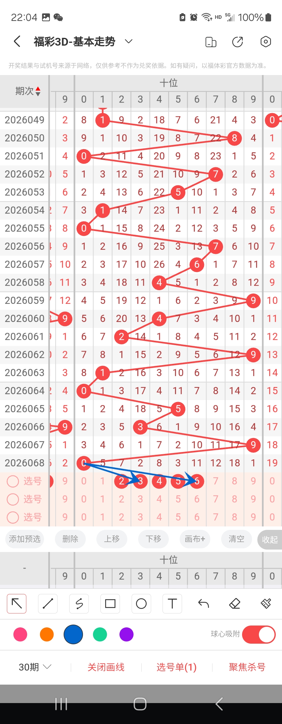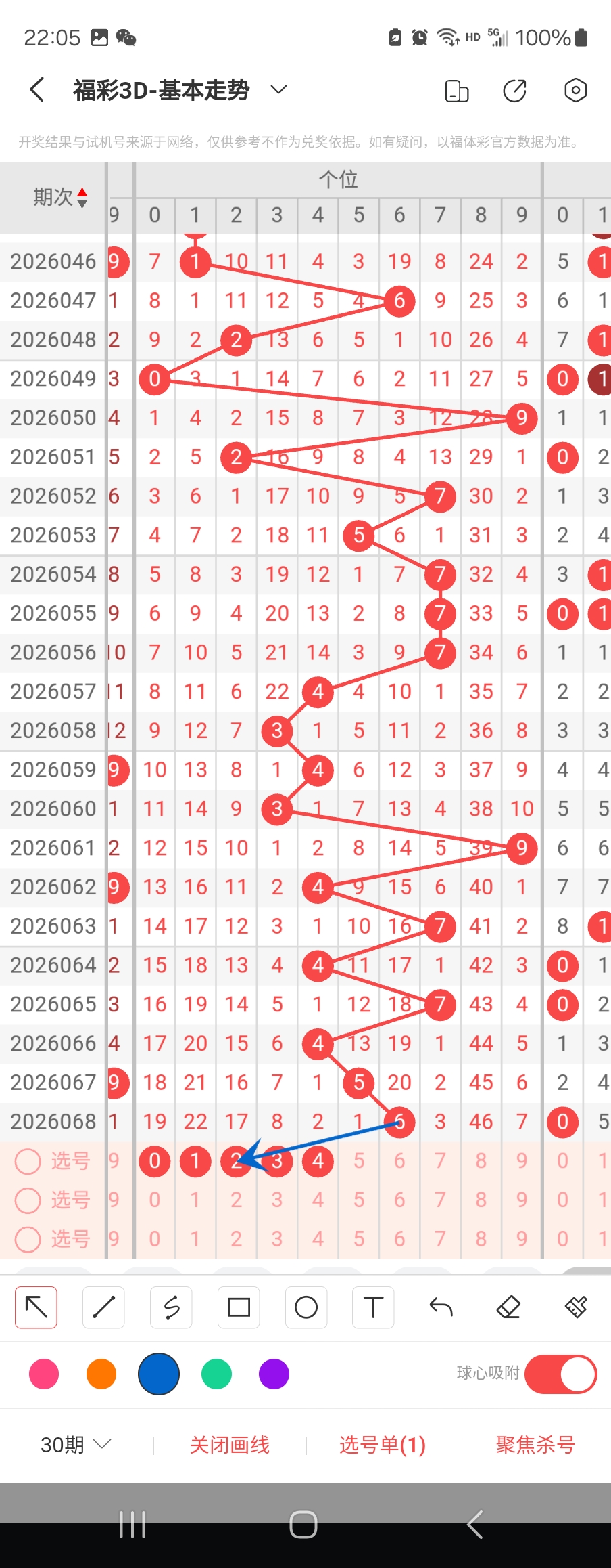 个位走势标注如下图;