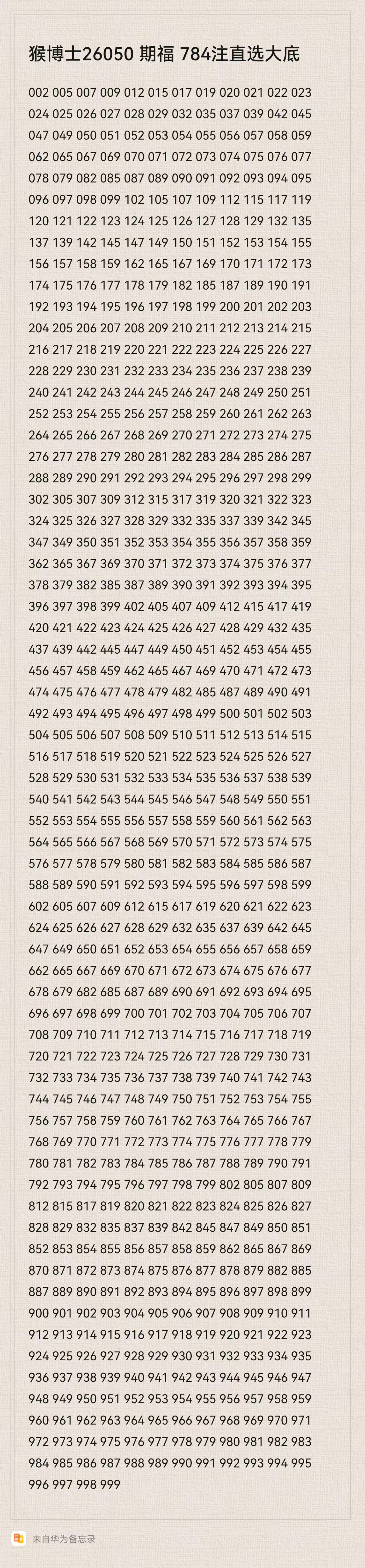 猴博士26050期福784注直选大底:(可以当母底用,然后进行缩水)