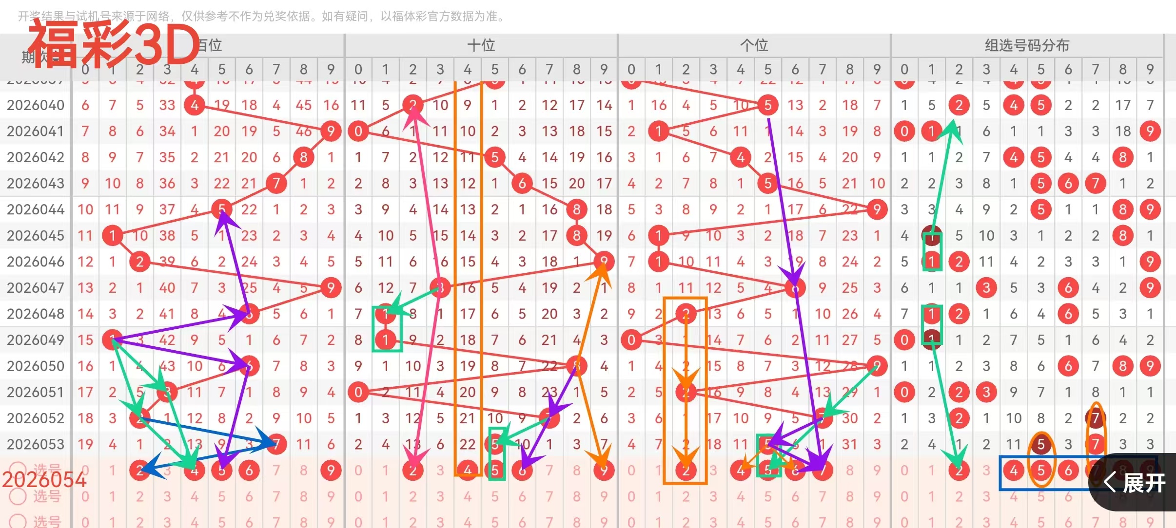 初闻你名3D第054期丨上期中直选+3-7码复式543码定位直选