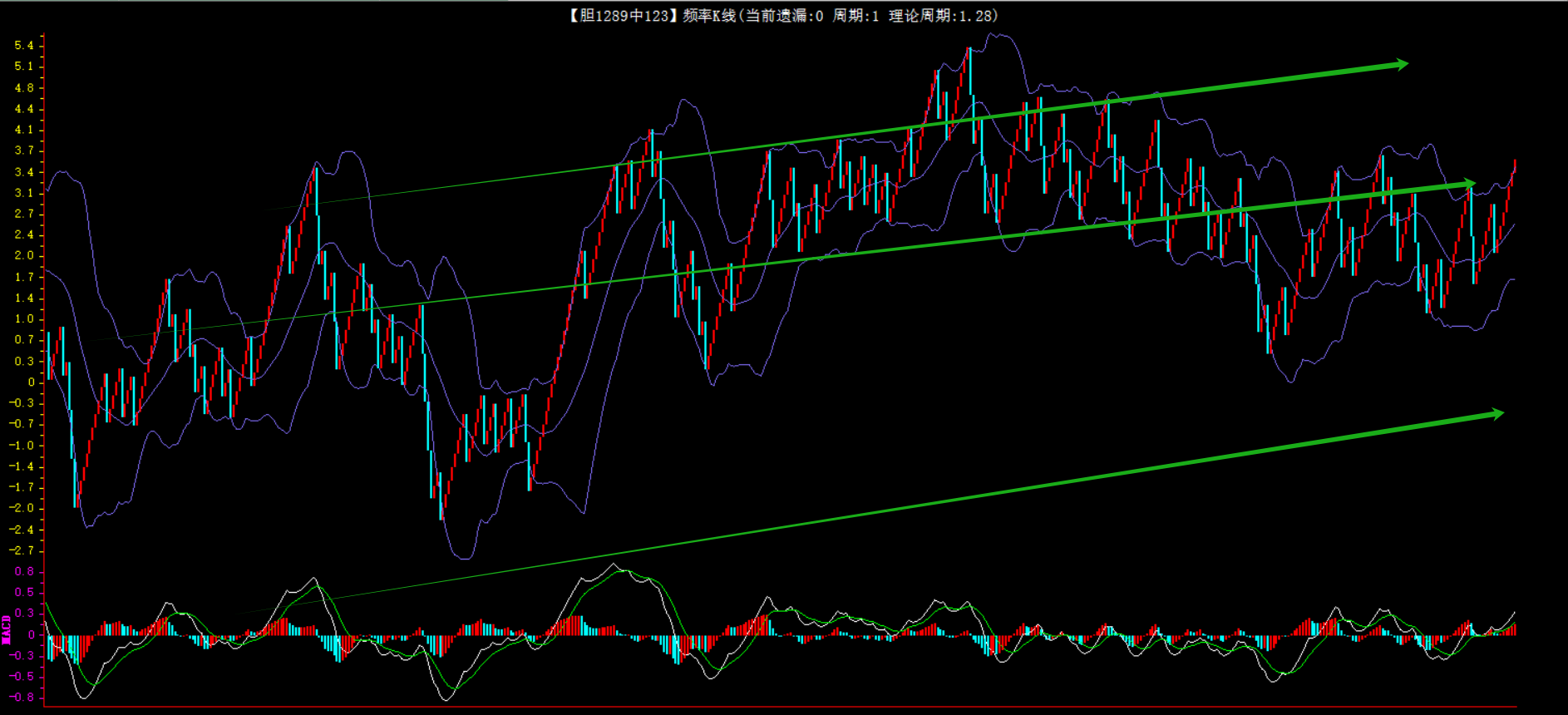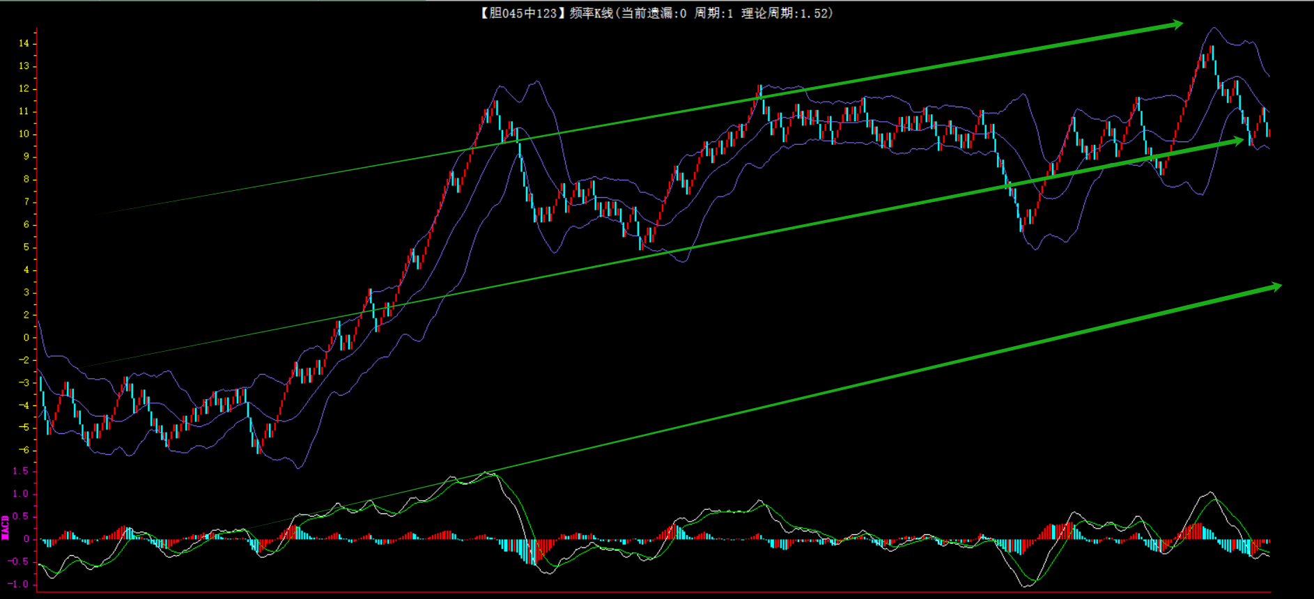 整体趋势上行,上边沿线趋势向上,下边沿趋势也是向上,节点震荡,当前开1期,本期关注。