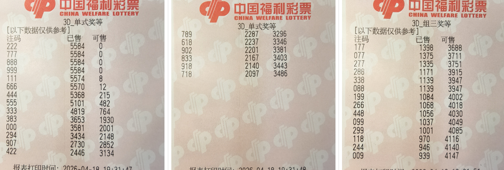 由于3D玩法灵活多变,我主要使用统计这些对码和补码的出次,选取排序前四的号码来做胆组。