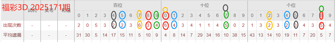 福彩3D 2025171期分析分享(上期中5,6,7码,及定位)