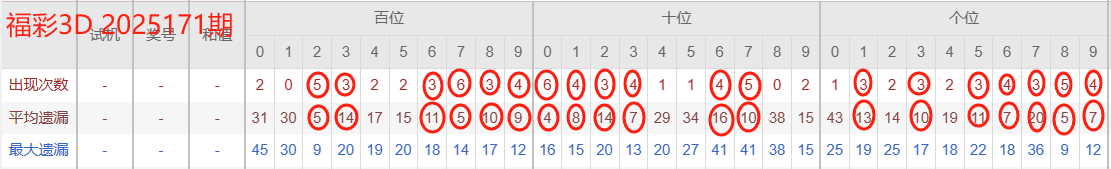 2025170期开奖号码475,我们可以看出近30期百位4出现2次,十位7出现5次,个位5出现3次。
