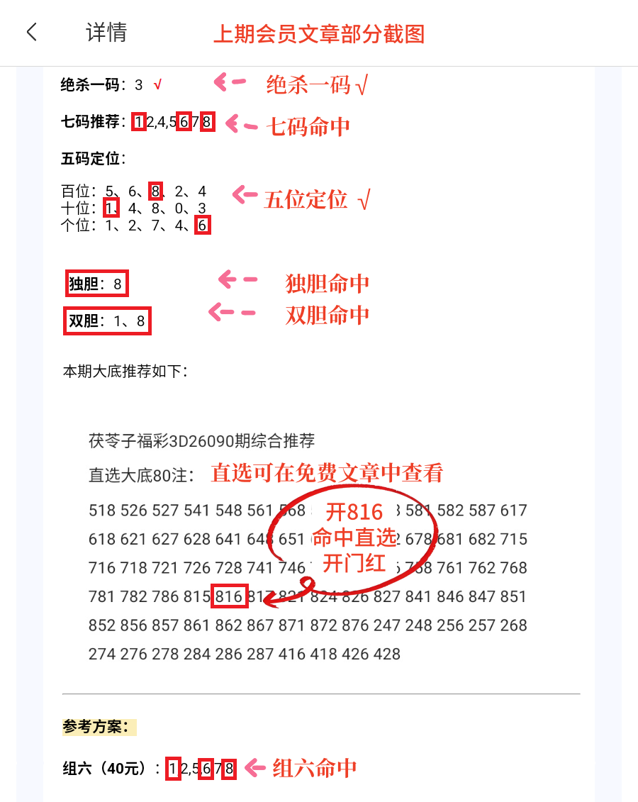 会员文章中独胆命中。双胆命中。七码推荐,组六,五码定位均命中。