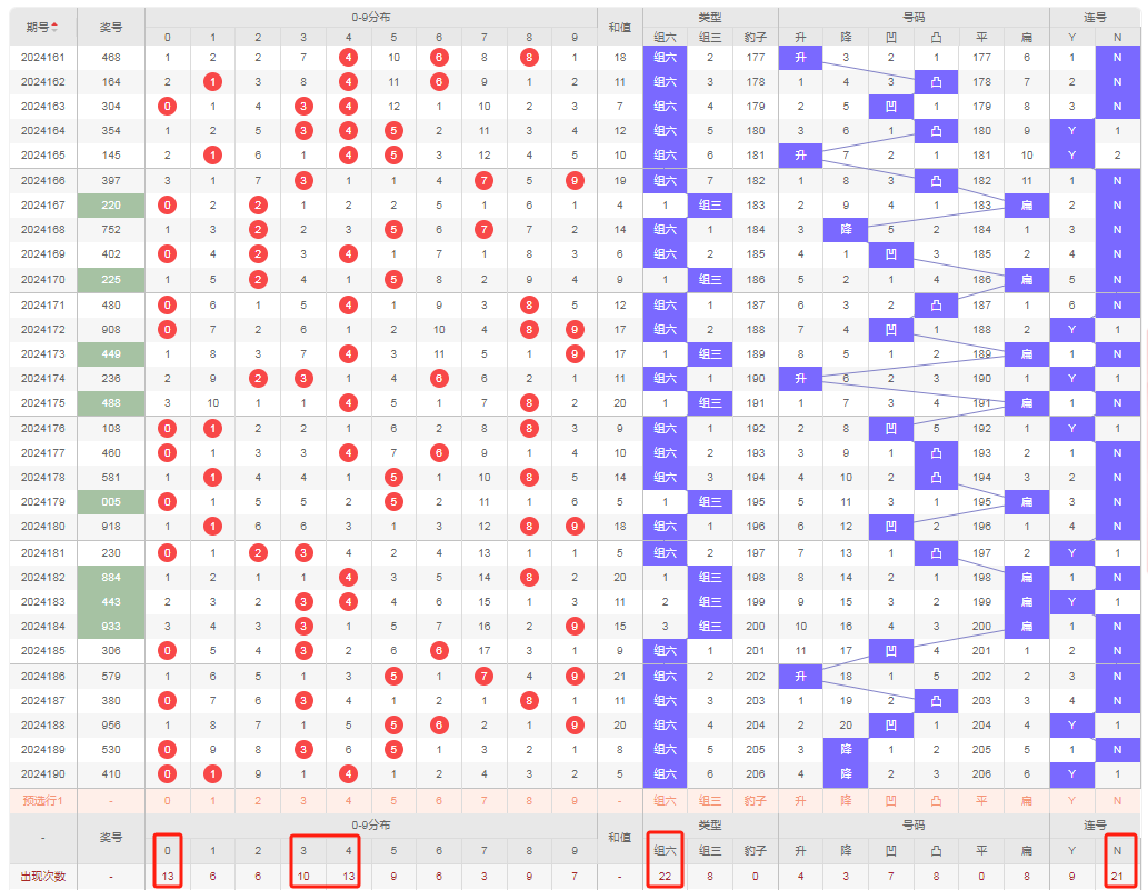 上期个位开0,个位今天建议继续关注偶数0 2 4 6 8