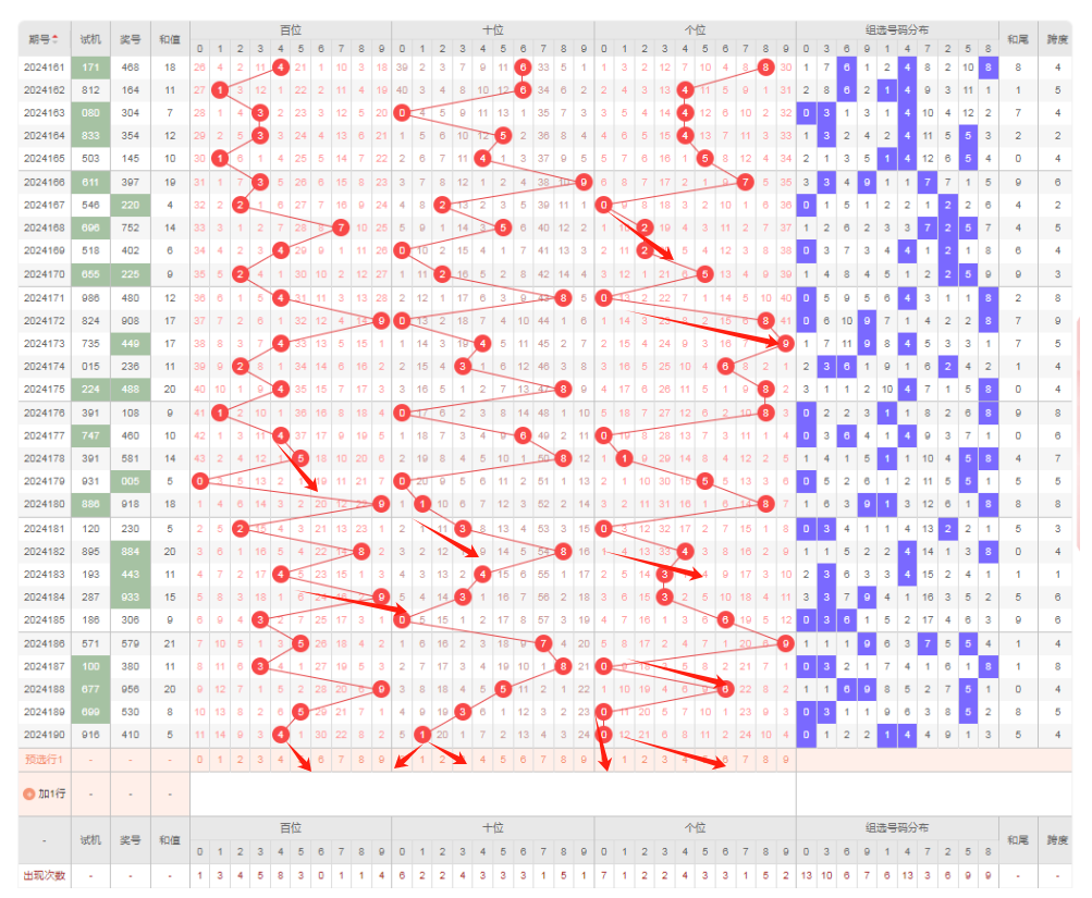 上期简单回顾:上期开410,重复上期号码1个,3小0大,1奇2偶,跨度4,和值5,试机号重复1个
