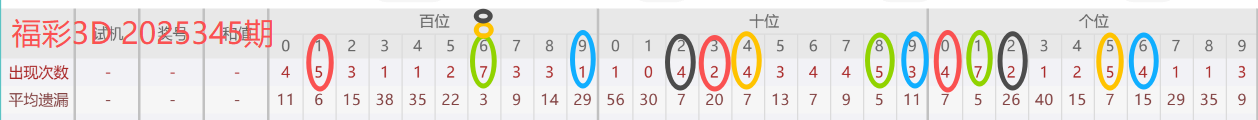2025343期开奖号码645,我们可以看出近30期百位6出现6次(减位回补),十位4出现4次,个位5出现5次。