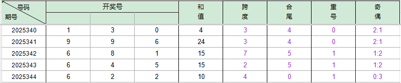 2025340期开奖号码130,我们可以看出近30期百位1出现5次,十位3出现2次,个位0出现4次(较341期减一)。