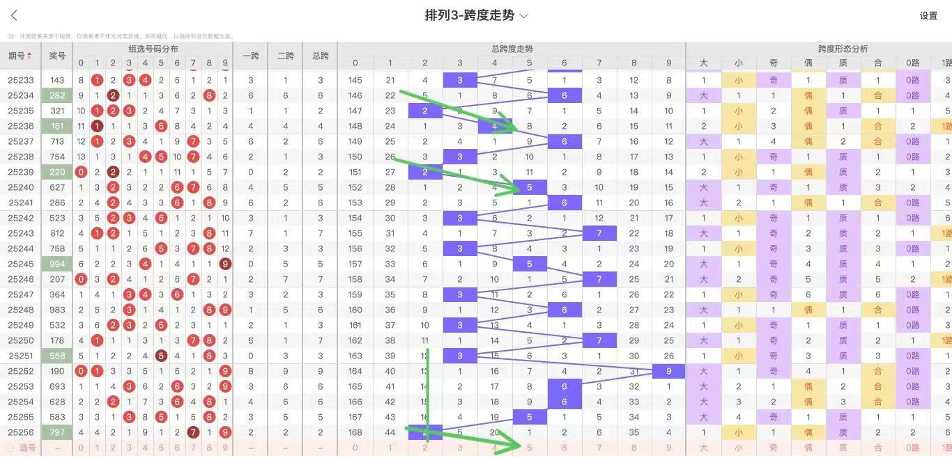 10期内跨度走势为:3-6-3-7-3-9-6-6-5-2,10期内大小跨比:6:4,奇偶跨比6:4,百期内跨度2共开出的12次,下期数据:3 6 8 6 7 8 9 5 7 4 5 近期度较热,考虑跨度2开出后容易出大跨度,近期大小规律下大:奇:质,所以接下来继续小跨,奇跨度表现!