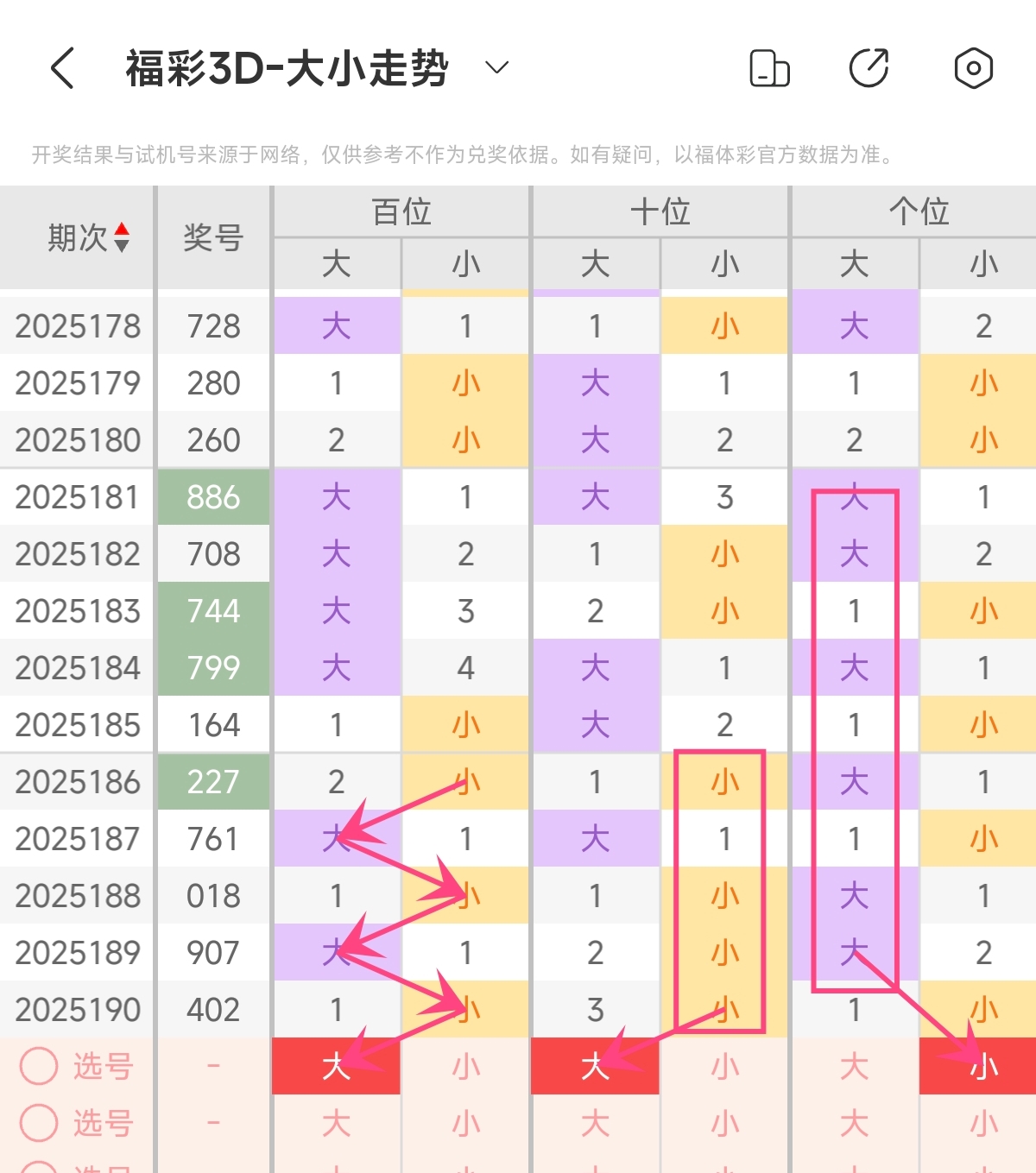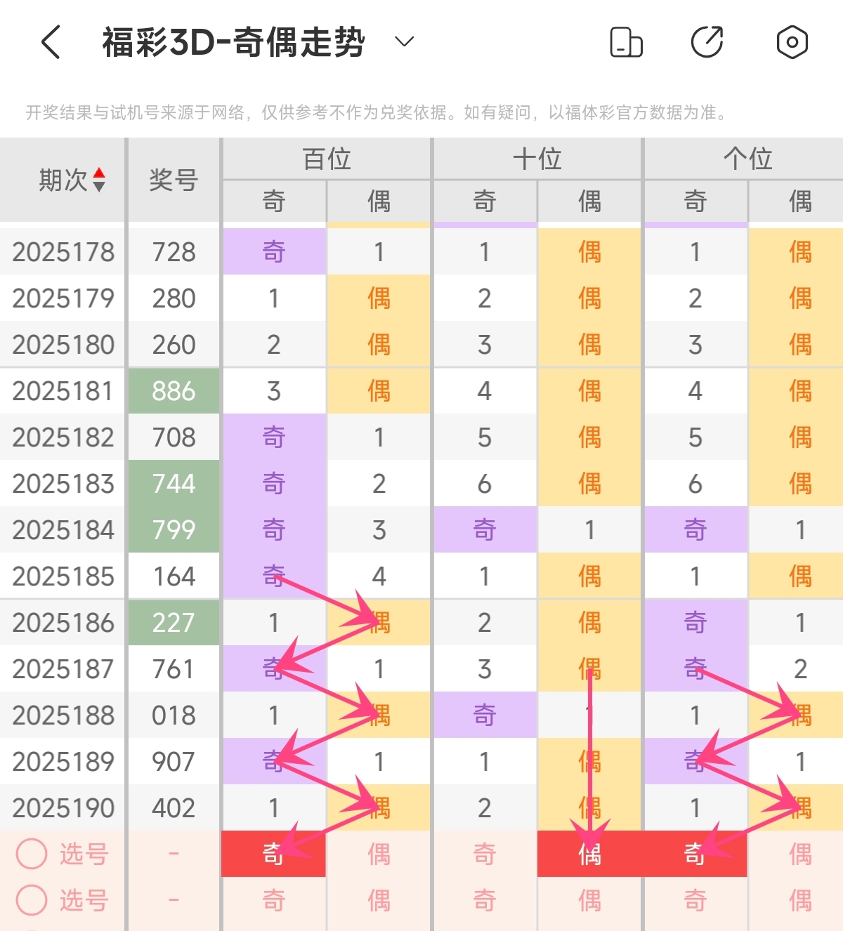 首先让我们回顾一下上期福彩3D第2025190期开奖号码为402,为组六形态,大小比为0:3,奇偶比为0:3,和值为6,跨度为4。
