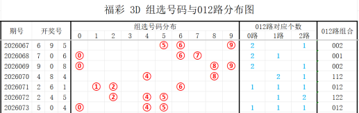 通过对走势的综合判断,现对福彩3D 2026074期分析如下:
