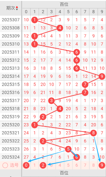 上期个位跨度0这期跨度必然在1-6间,根据历史记录最近100期都是如此规律。