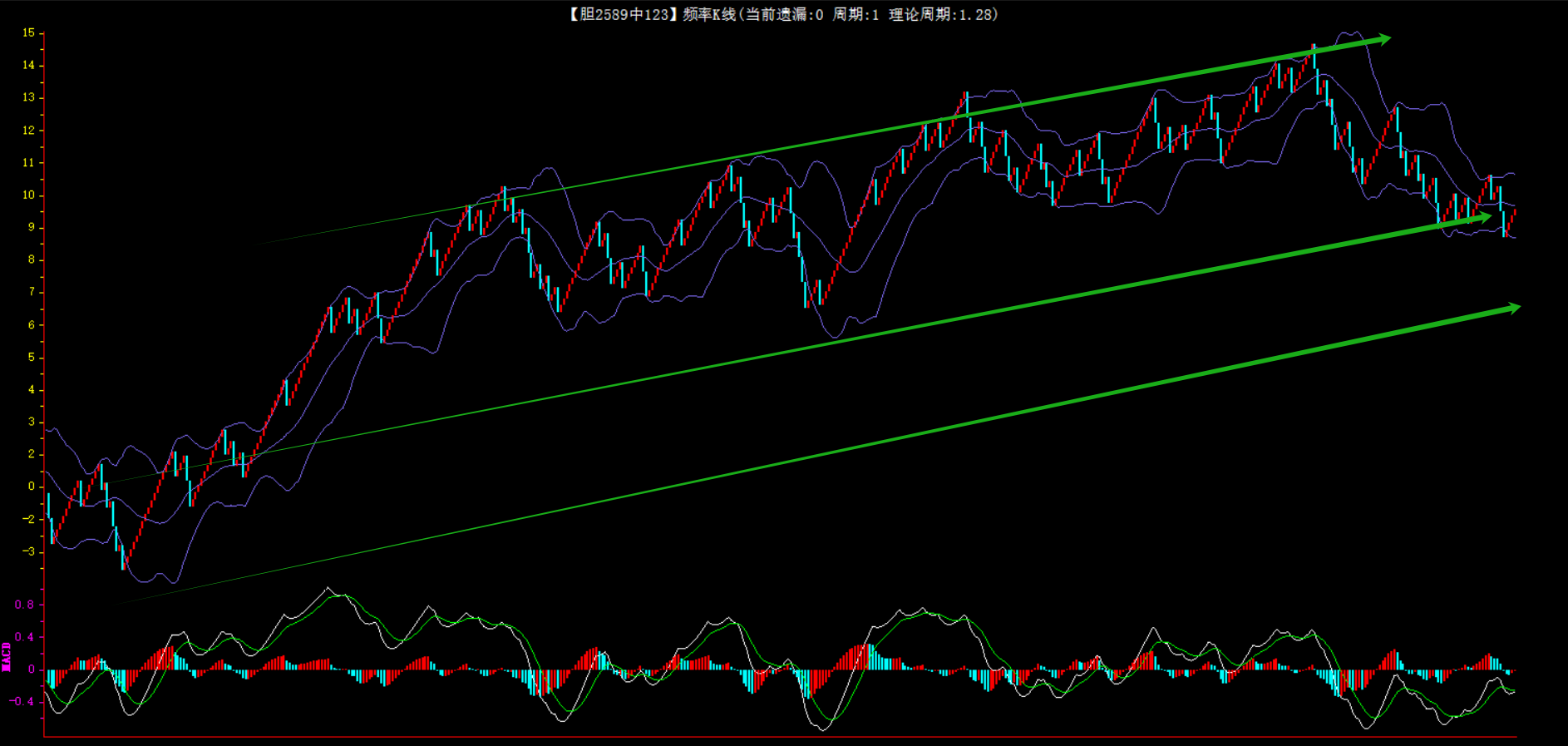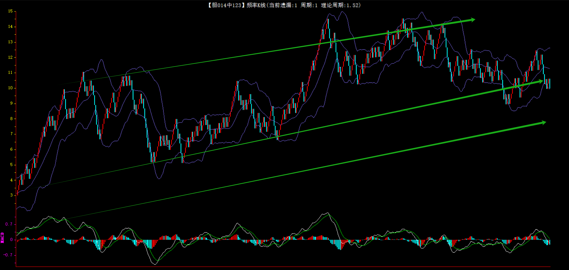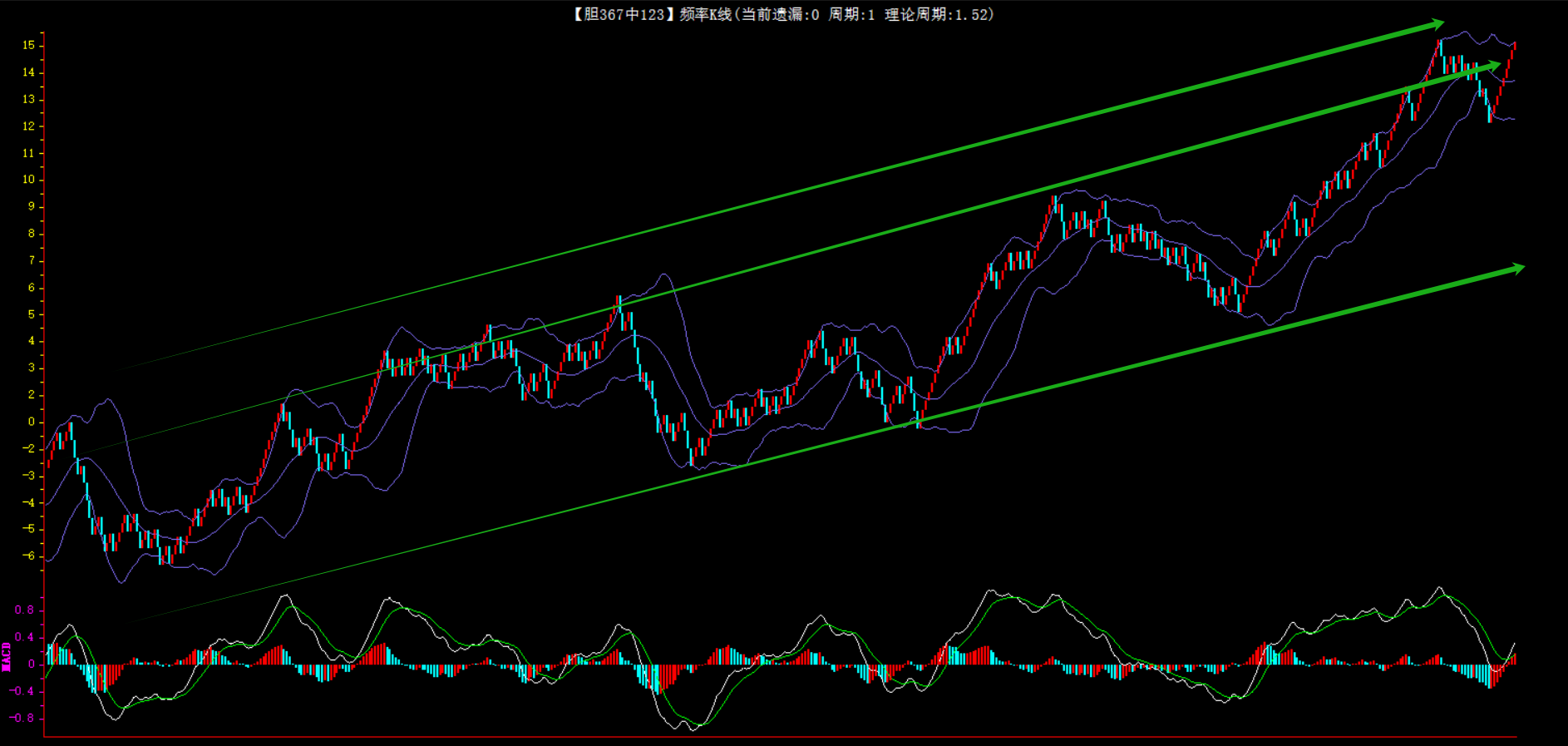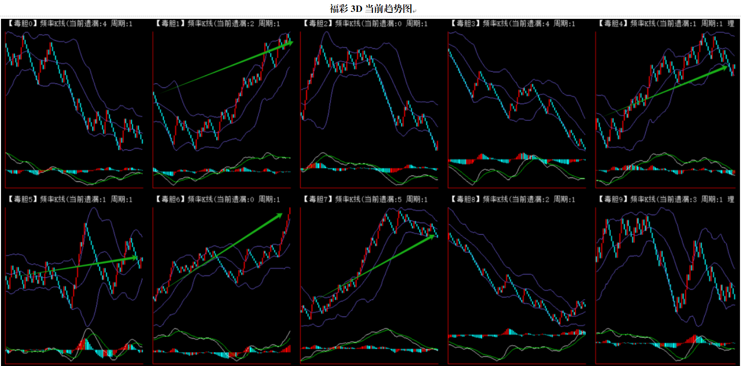 整体趋势上行,上边沿线趋势向上,下边沿趋势也是向上,节点震荡,当前遗漏1期,本期关注。