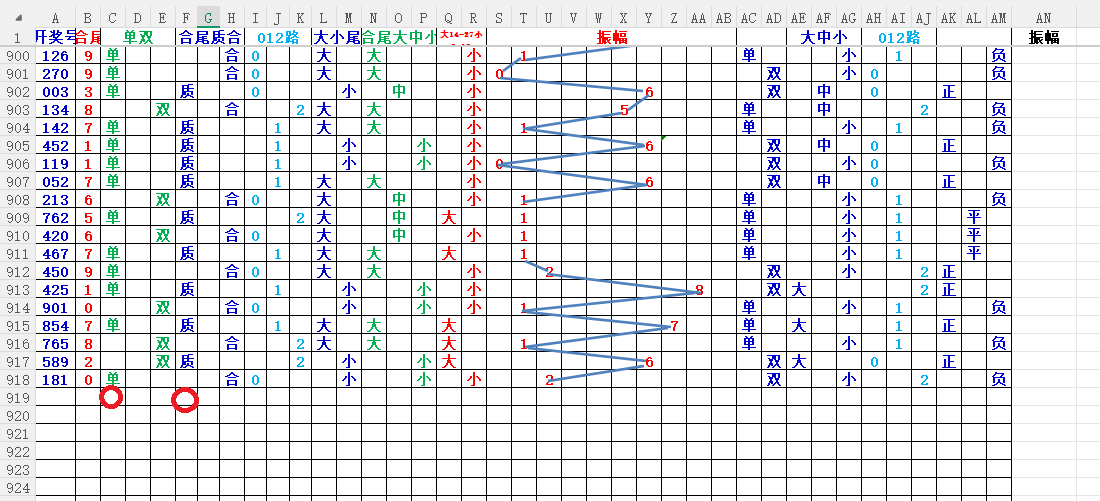 如上图56,012路分析。0369路号出胆,039中出,重点39胆码