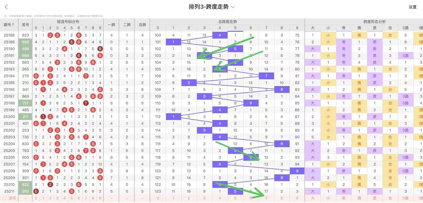 10期内跨度走势为:3-4-8-5-6-4-9-8-4-5,10期内大小跨比:6:4,奇偶跨比4:6,百期内跨度5共开出的23次,下期数据:9 5 7 2 7 3 6 1 1 5 6 6 3 5 5 4 2 6 4 3 4 6近期度较热,考虑跨度5开出后容易出大跨度,近期大小规律下大:偶:合,所以接下来继续大跨,偶跨度表现!
