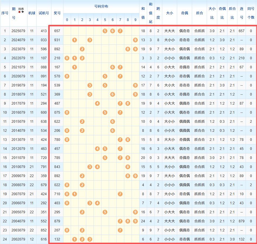 1、统计往年同期开奖号码