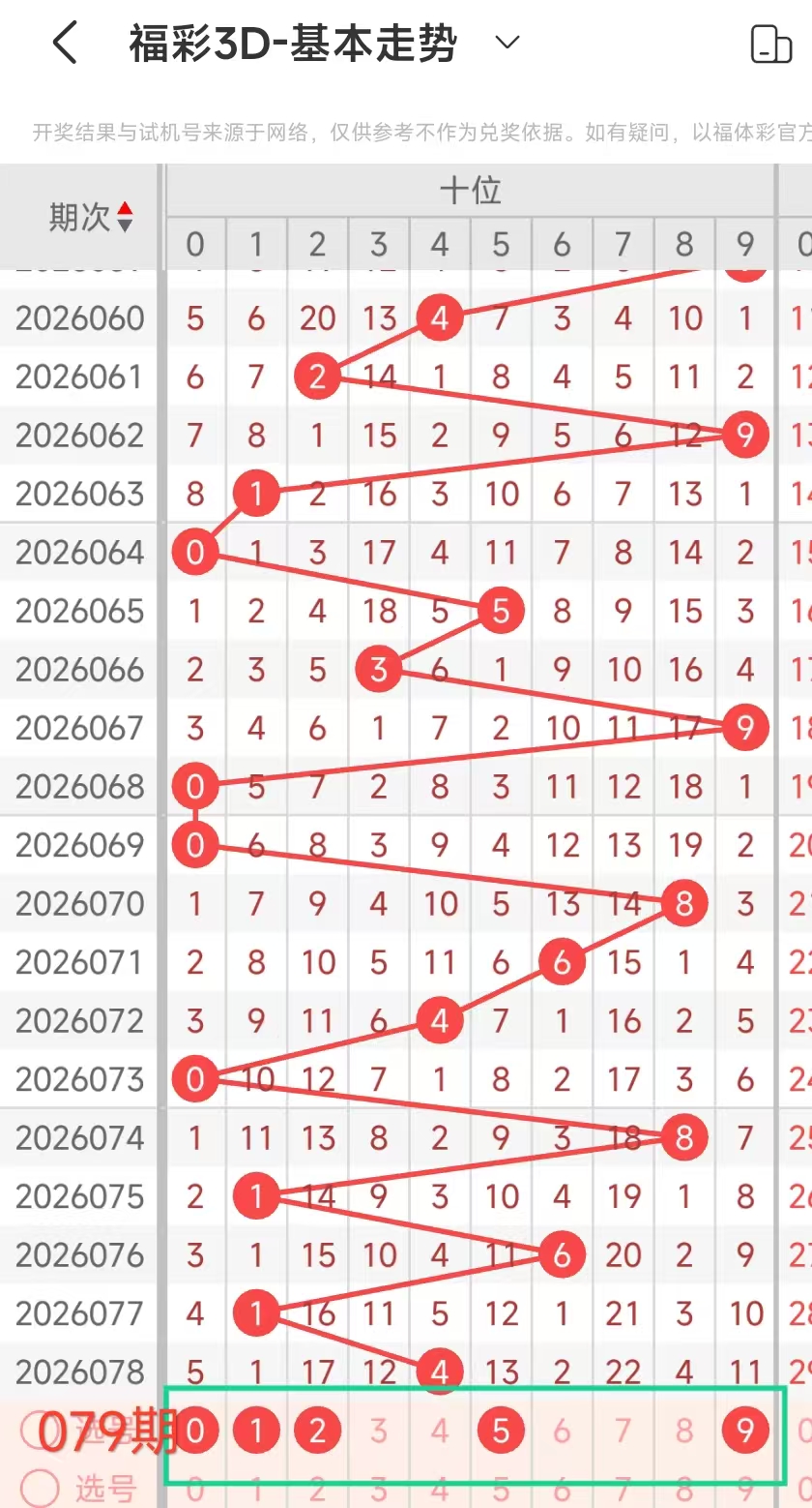3、当个位开出9后下期开出:668962124,经统计0号出0次、1号出现1次、2号出现2次、3号出现0次、4号出现1次、5号出现0次、6号出现3次、7号出现0次、8号出现1次、9号出现1次。观察发现26号没出现,本期可以考虑。