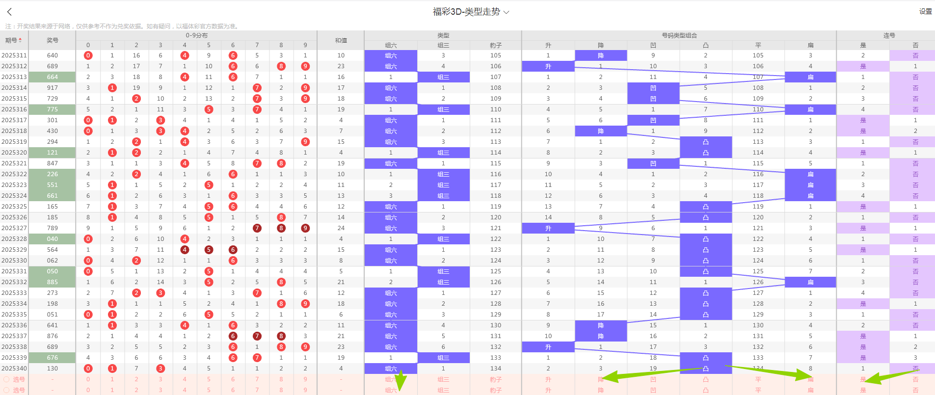 今天福彩3D第2025341期的趋势判断为:方向主看组六防组三;跨度回升明显;和值反弹概率较大;