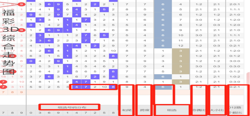 主要利用近15期开奖号码走势图为依据, 按照奇数、偶数、和值、跨度、重码、邻码、隔期码 、012路等进行综合分析研判。