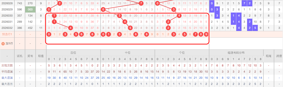 上期个位开出2,本区与上期的跨度为0,本期我们重点关注359,本期 个位推荐关注:357890