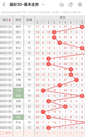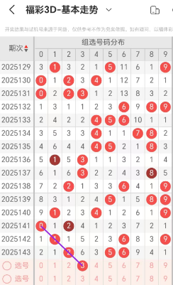 如上图所示,组选号码分布图中的往期奖号0 1 2 3形成一个斜4连,这是个小概率事件,故杀3码。