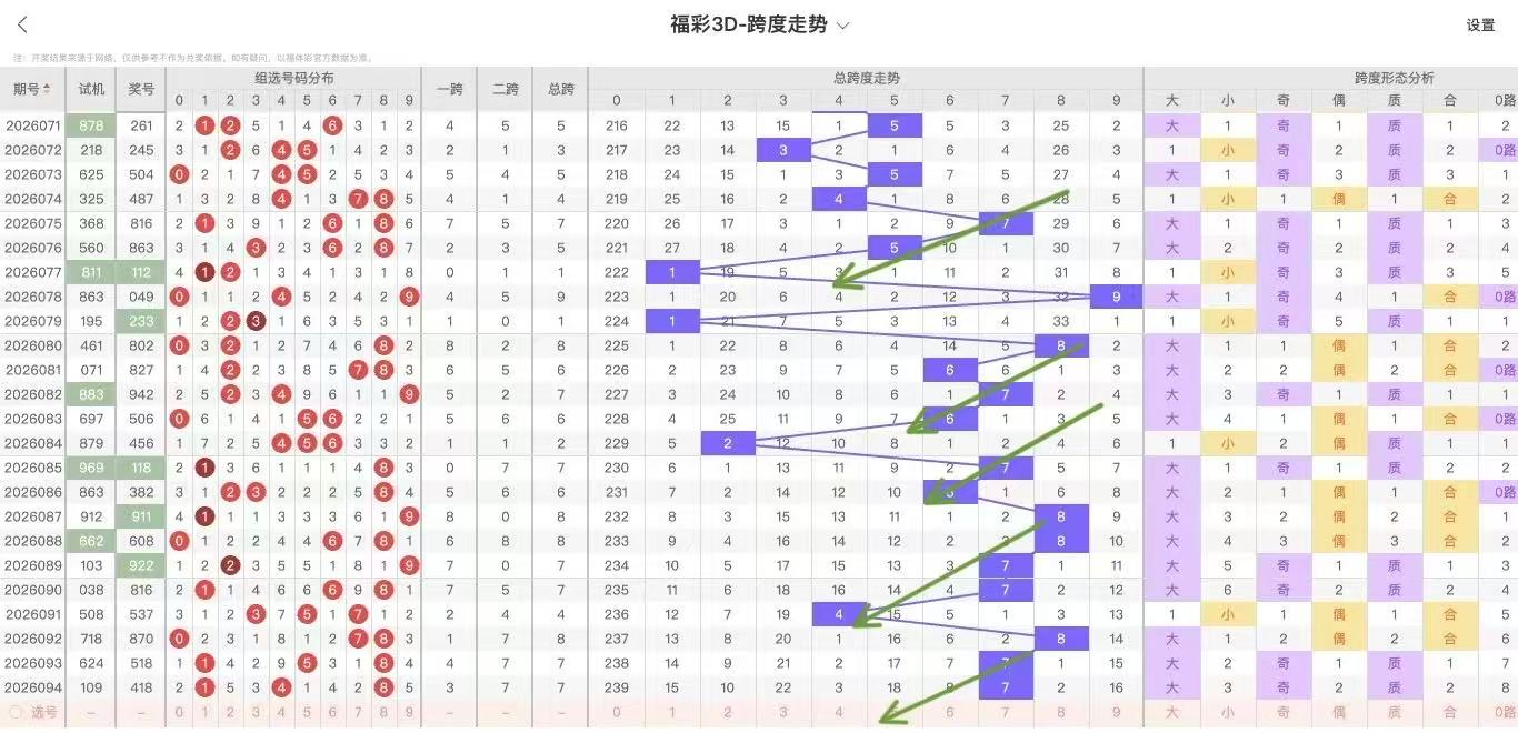 2026095期福彩3D跨度走势图如下:上期开出跨度7,而据观察近五期跨度大小走势为:大小大大大
