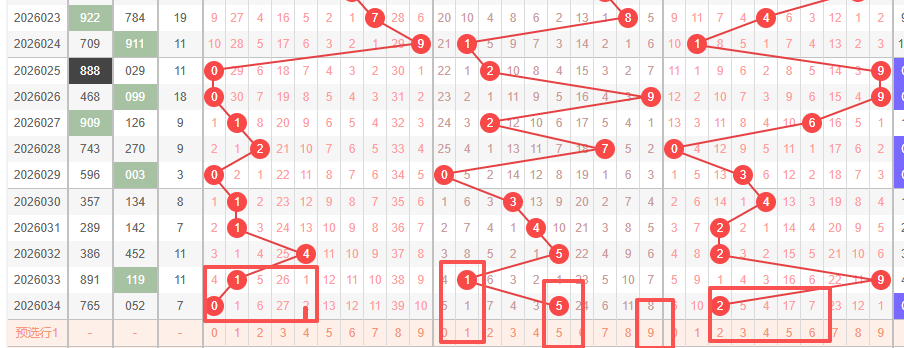 形态复盘: 034期虽然断了147区间,但走出了“杂六”形态。 :杂六之后,看半顺回补。同时,跨度5处于咱们预判的活跃区间,为今日跨度继续在中位震荡埋下了伏笔。