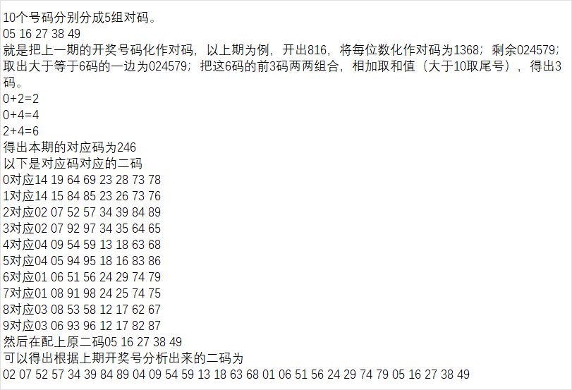 那么上期开出816,相邻号码为02579,则本期胆组二为02579。